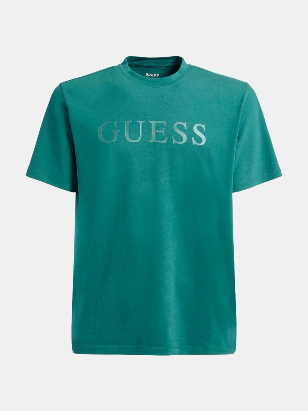 Gumové logo značky Guess v barvě trička.