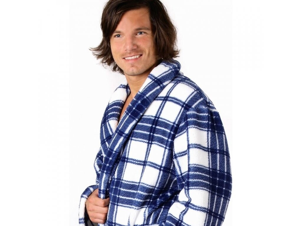 Pánský župan RYAN 2132 Vestis -je dlouhý župan klasického střihu s šálovým límcem, páskem a dvěma kapsami. V nadčasovém kostkovaném vzoru, jednoduchý, pohodlný střih poskytuje volnost pohybu a měkký, hřejivý materiál dodává chvílím volna dokonalý pocit klidu a pohody.
