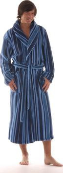 Pánský župan Joe 2132 - Vestis, dlouhý pruhovaný župan v modré barvě, se šálovým lýmcem. Župan má velké kapsy, zavazuje se na pásek.