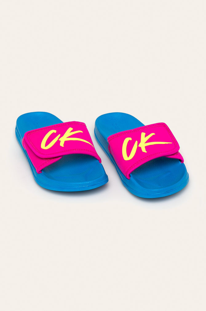 Produkt Pantofle KW0KW01028-CEU modrorůžová - Calvin Klein prodáváme v těchto velikostech: 41/42a barvách modro-růžová
