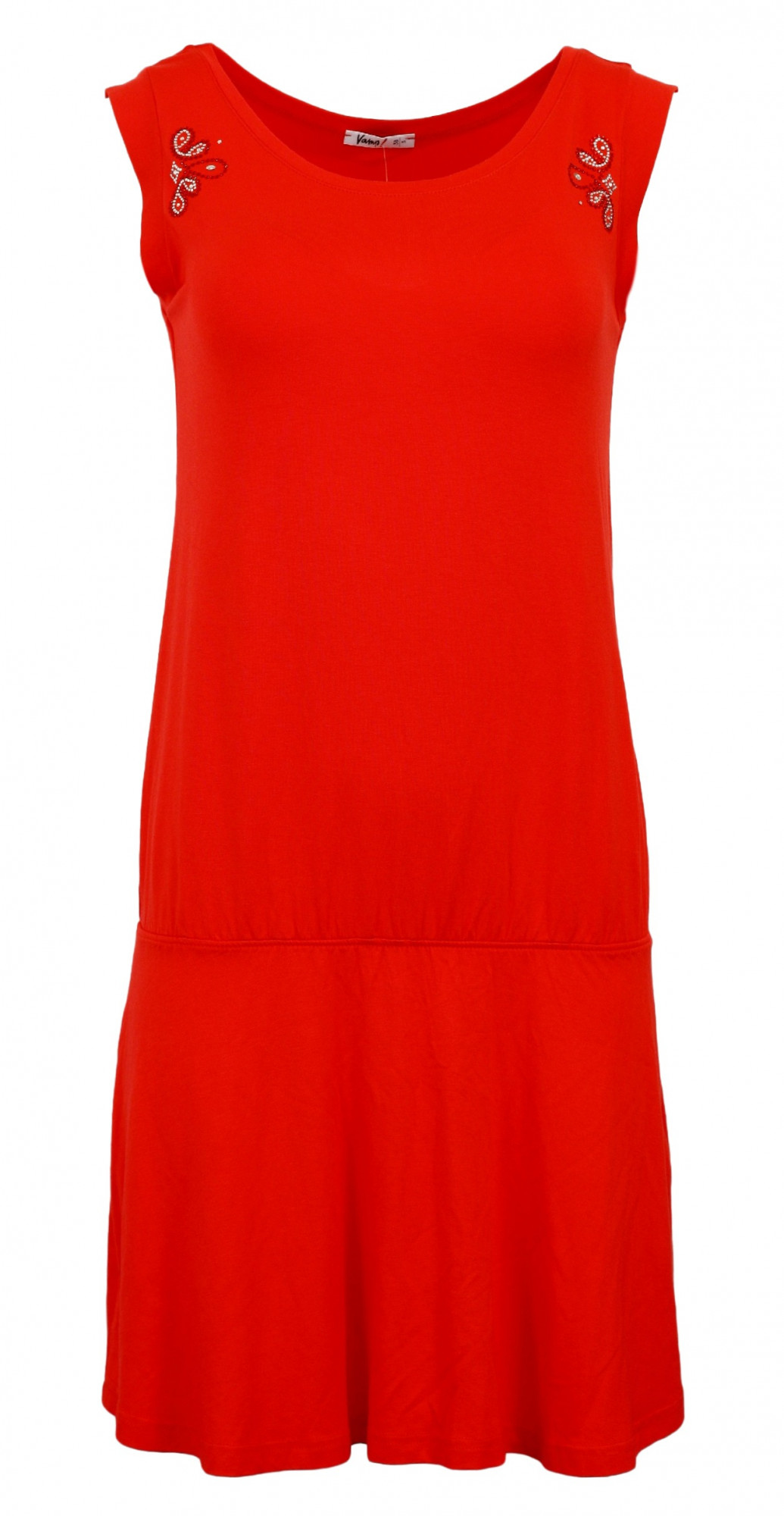 Plážové šaty 4642 - Vamp dlouhé pod kolena, bez rukávu,kolem krku do kulatá. Přední díl zdobený kamínky. Materiál 95% viskóza, 5 % elastan.
