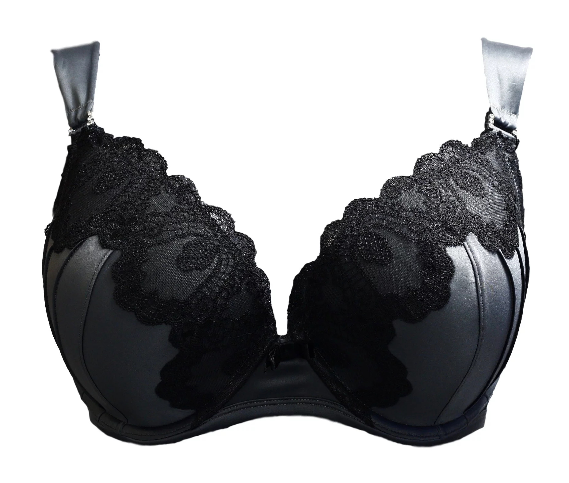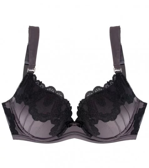 Luxusní podprsenka Pleasure State z elastického saténu v dekoltu a bocích dozdobena vyšívaným tylem. Na košíčcích jemné sámkování.