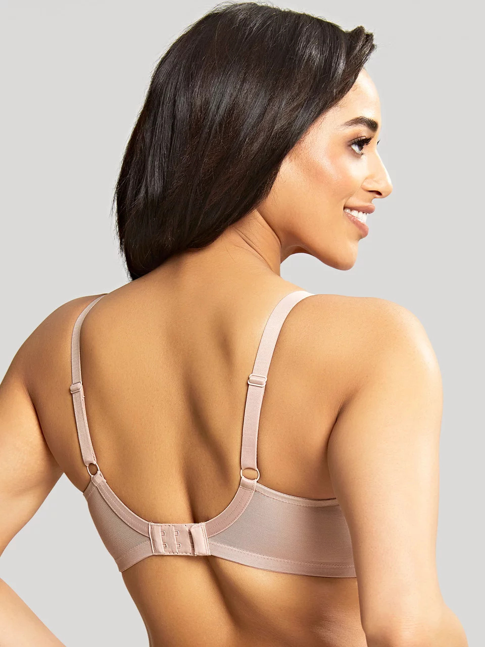 Podprsenka Panache Ana Plunge má vrchní košíčky z ženské elastické krajky, zakončené mašličkou ze saténové stuhy a krásnými detaily z korálků. Spodní část košíčků podšitá stabilizátorem a vnitřní boční ramínka poskytují pohodlnou uvolněnou oporu a zvýšený střih až do velikosti košíčku H. Ana má sexy hluboký výstřih, který je ideální pro oblékání pod oblečení s hlubokým výstřihem! třídílné košíčky s horními košíčky z elastické krajky a spodními košíčky s podšívkou Křídla z elastické síťoviny vám zajistí pevné a pohodlné obepnutí těla Plně nastavitelná ramínka Drátěná vnitřní boční poutka pro centralizaci poprsí