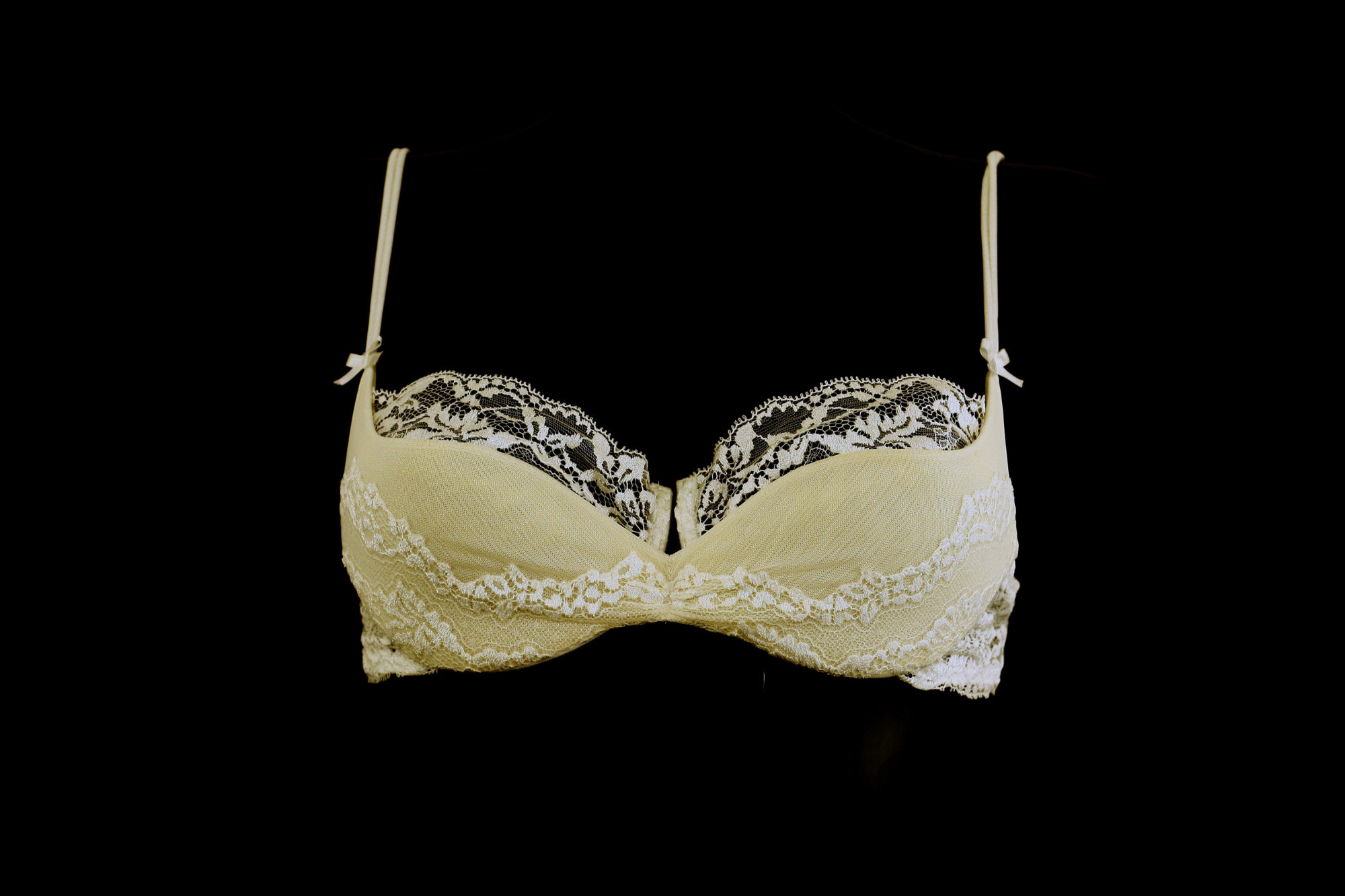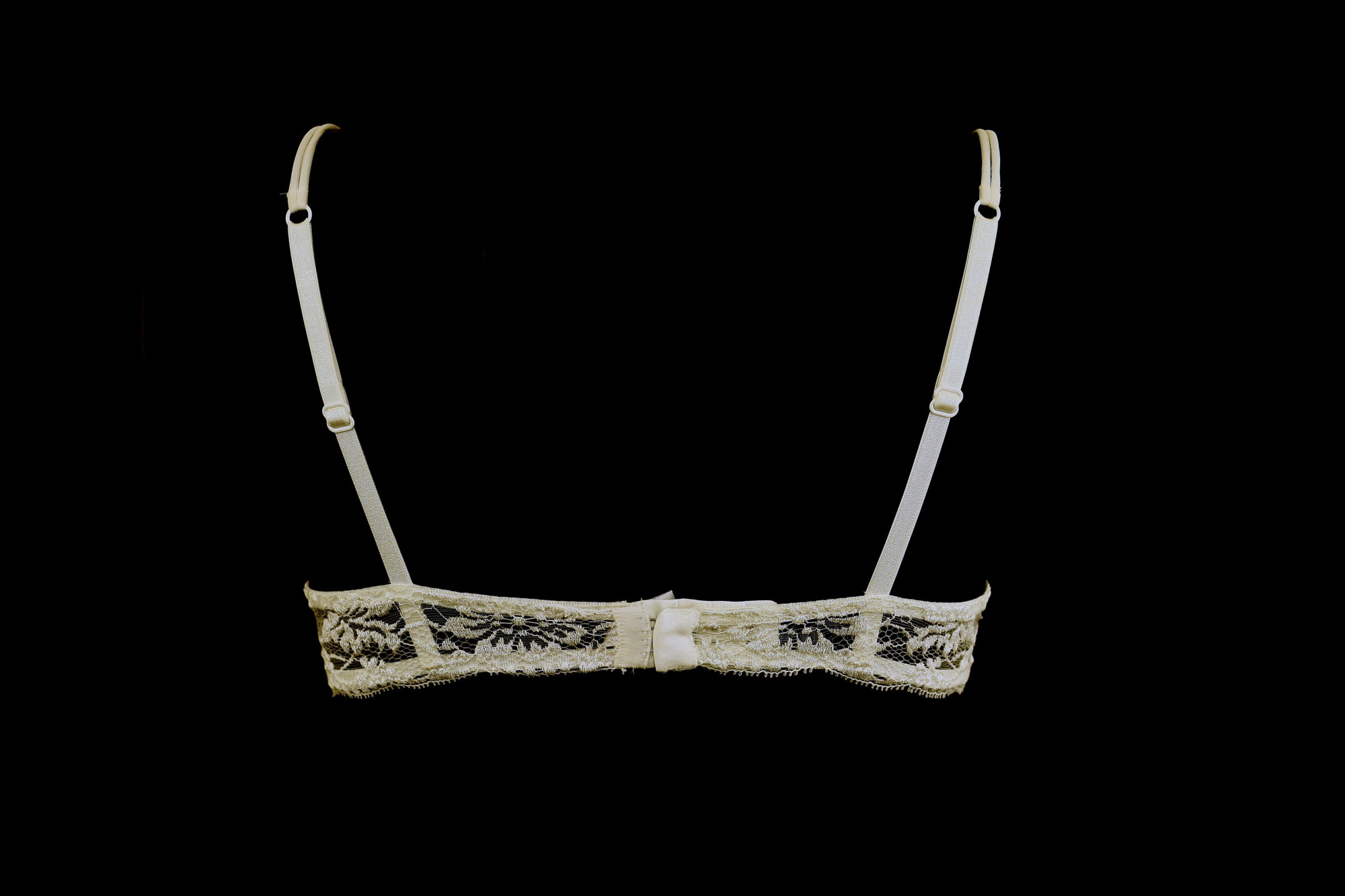 Podprsenka s kosticí, lehce polstrovaná z tylu a krajky. Saténové mašle, dvojitá ramínka.