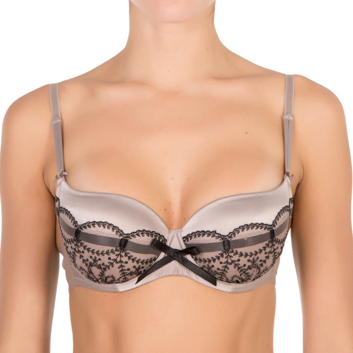 Dámská push-up podprsenka s tenkými posouvacími ramínky, vzadu zapínání na dva háčky.