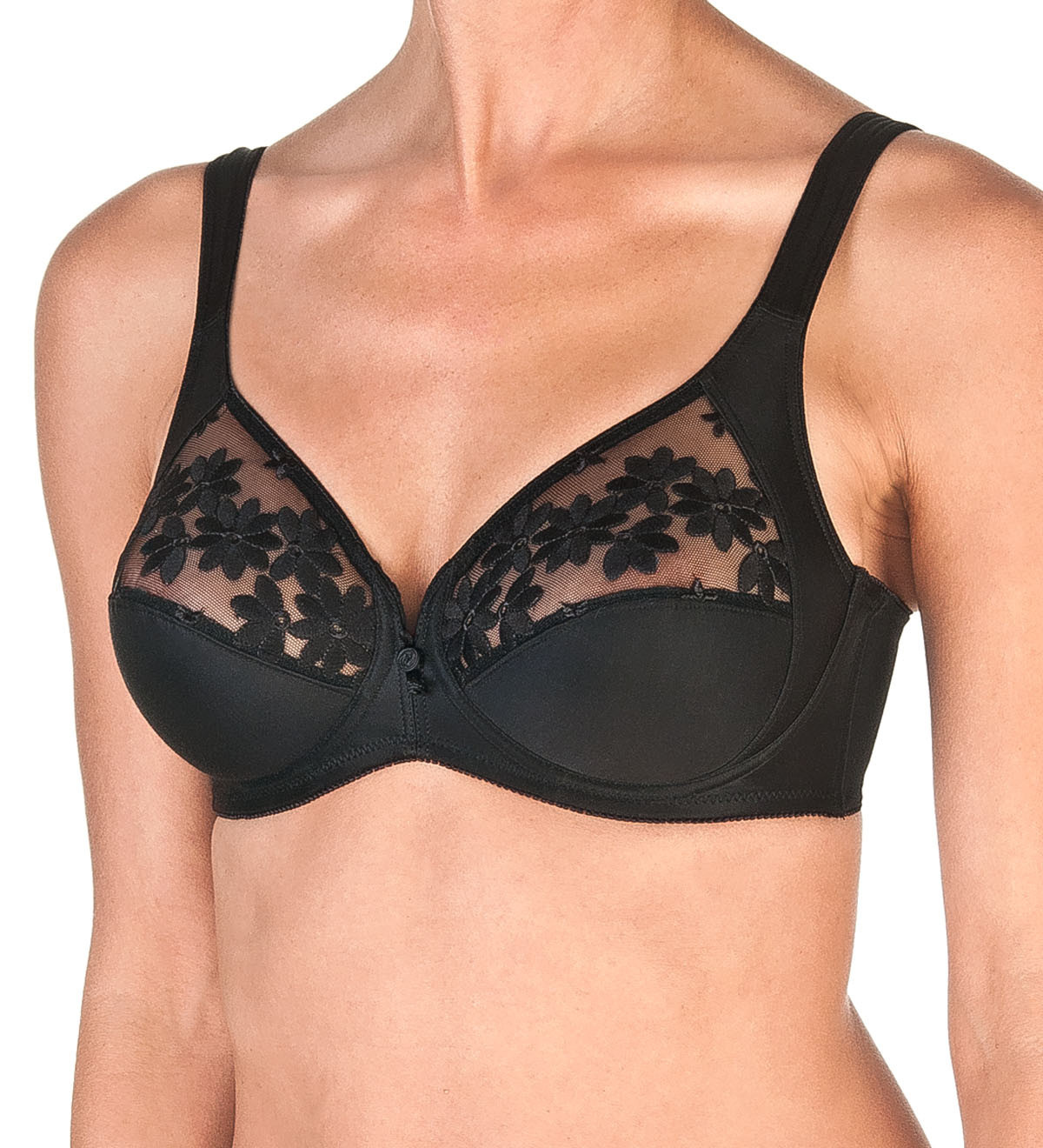 Inovovaný elastický materiál Lycra Soft-Micro s bavlnou, florální švýcarská tylová krajka. Podprsenka s kosticí.