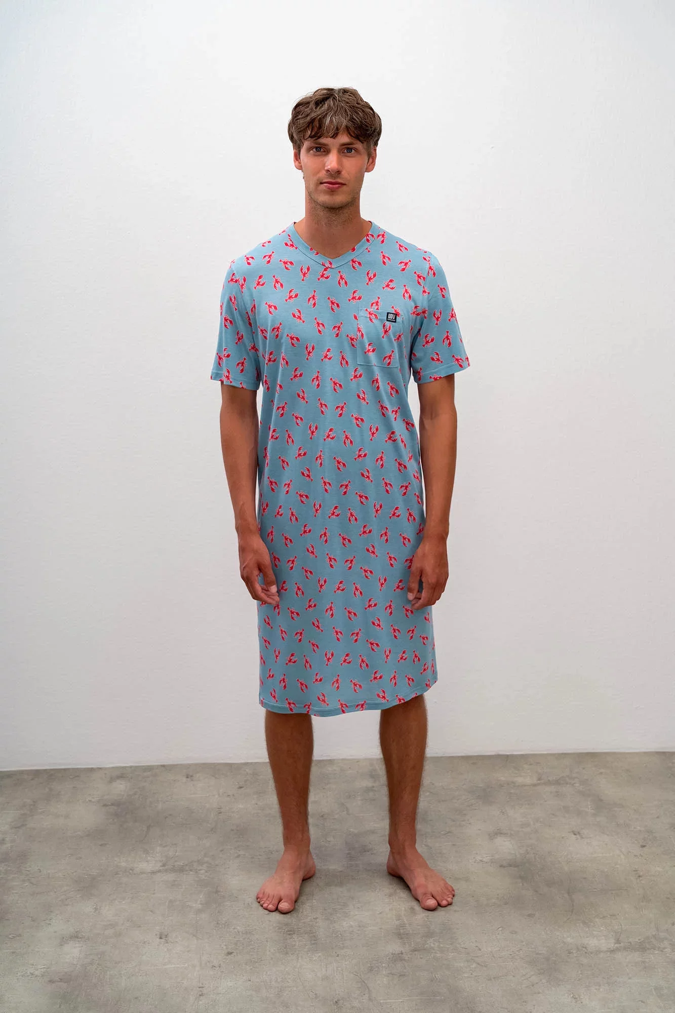 Pohodlná pánská noční košile pro dobrý a zdravý spánek. Noční košile je s krátkým rukávem, náprsní kapsičkou a výstřihem do V a zdobí ji račí potisk. Tato noční košile je vyrobena z vysoce kvalitní, genetický nemodifikované řecké bavlny, která poskytuje vysoké pohodlí, příjemný pocit na dotek, prodyšnost, pružnost a odolnost. Modalové vlákno je přírodního charakteru, je nesmírně poddajné a splývavé a zachovává svou měkkost, krásnou barvu a tvar i po mnoha vypráních.