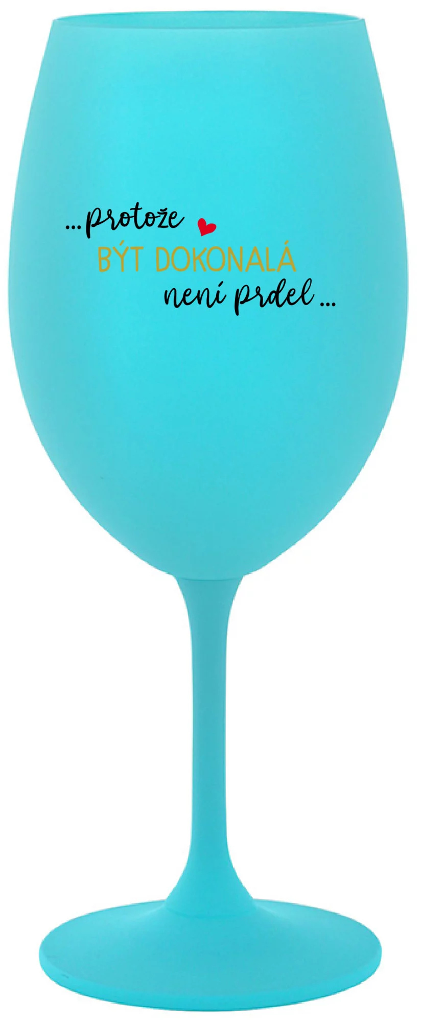 Vinná tyrkysová sklenice s originálním motivem ...PROTOŽE BÝT DOKONALÁ NENÍ PRDEL... je krásným a osobitým dárkem, které ale využijete i Vy sami třeba ve chvílích, kdy si budete chtít zpříjemnit náročný den. Tyto originální vinné sklenice jsou totiž nejen pro výjimečné události, ale i pro běžné večery, které si chcete zpříjemnit sklenkou dobrého vína. Jistě proto potěší každého milovníka vína, i toho, kdo si umí svůj život vychutnat plnými doušky.