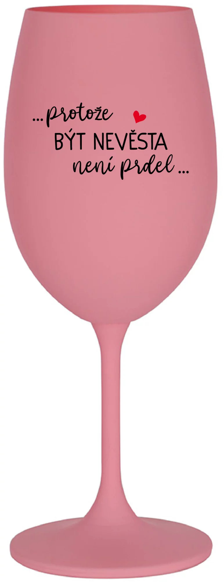 Vinná růžová sklenice s originálním motivem ...PROTOŽE BÝT NEVĚSTA NENÍ PRDEL... je krásným a osobitým dárkem, které ale využijete i Vy sami třeba ve chvílích, kdy si budete chtít zpříjemnit náročný den. Tyto originální vinné sklenice jsou totiž nejen pro výjimečné události, ale i pro běžné večery, které si chcete zpříjemnit sklenkou dobrého vína. Jistě proto potěší každého milovníka vína, i toho, kdo si umí svůj život vychutnat plnými doušky.