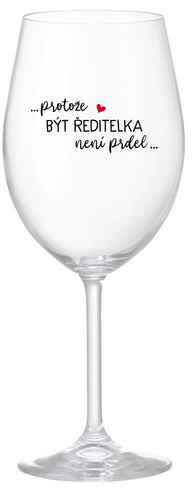 Vinná čirá sklenice s originálním motivem ...PROTOŽE BÝT ŘEDITELKA NENÍ PRDEL... je krásným a osobitým dárkem, které ale využijete i Vy sami třeba ve chvílích, kdy si budete chtít zpříjemnit náročný den. Tyto originální vinné sklenice jsou totiž nejen pro výjimečné události, ale i pro běžné večery, které si chcete zpříjemnit sklenkou dobrého vína. Jistě proto potěší každého milovníka vína, i toho, kdo si umí svůj život vychutnat plnými doušky.