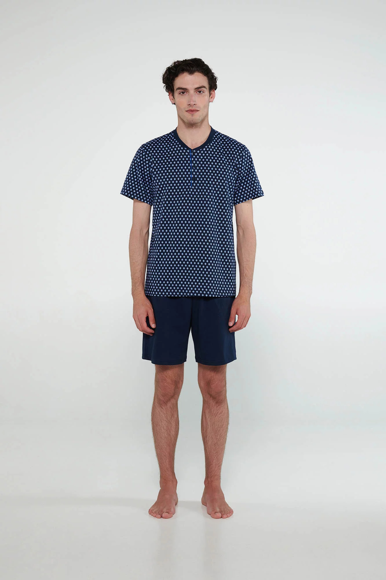 Pánské pyžamo s knoflíkovou légou a hladkými, krátkými kalhotami. Klasický design, který vás bude těšit po dlouhá léta.