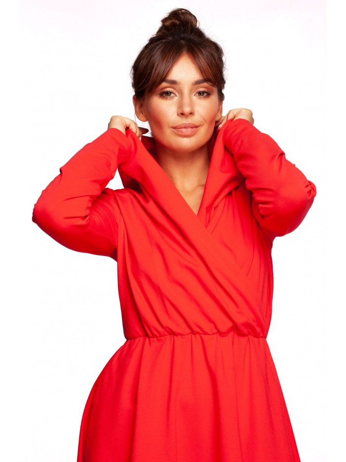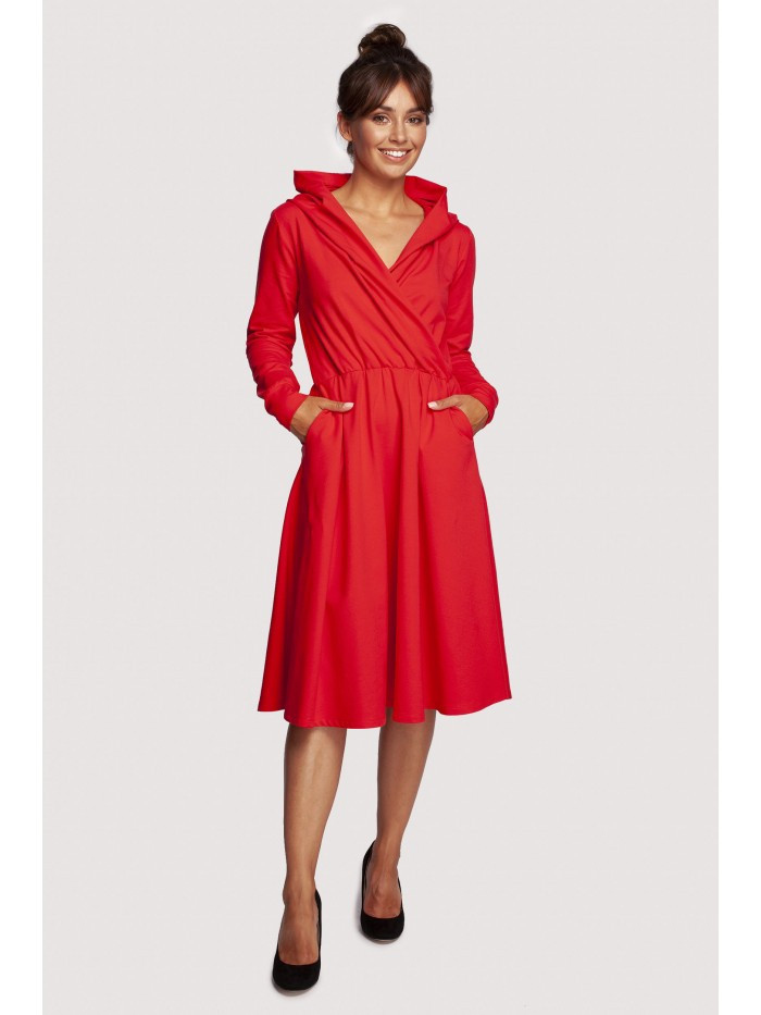 Rozšířené šaty s kapucí B245 červené - BeWear