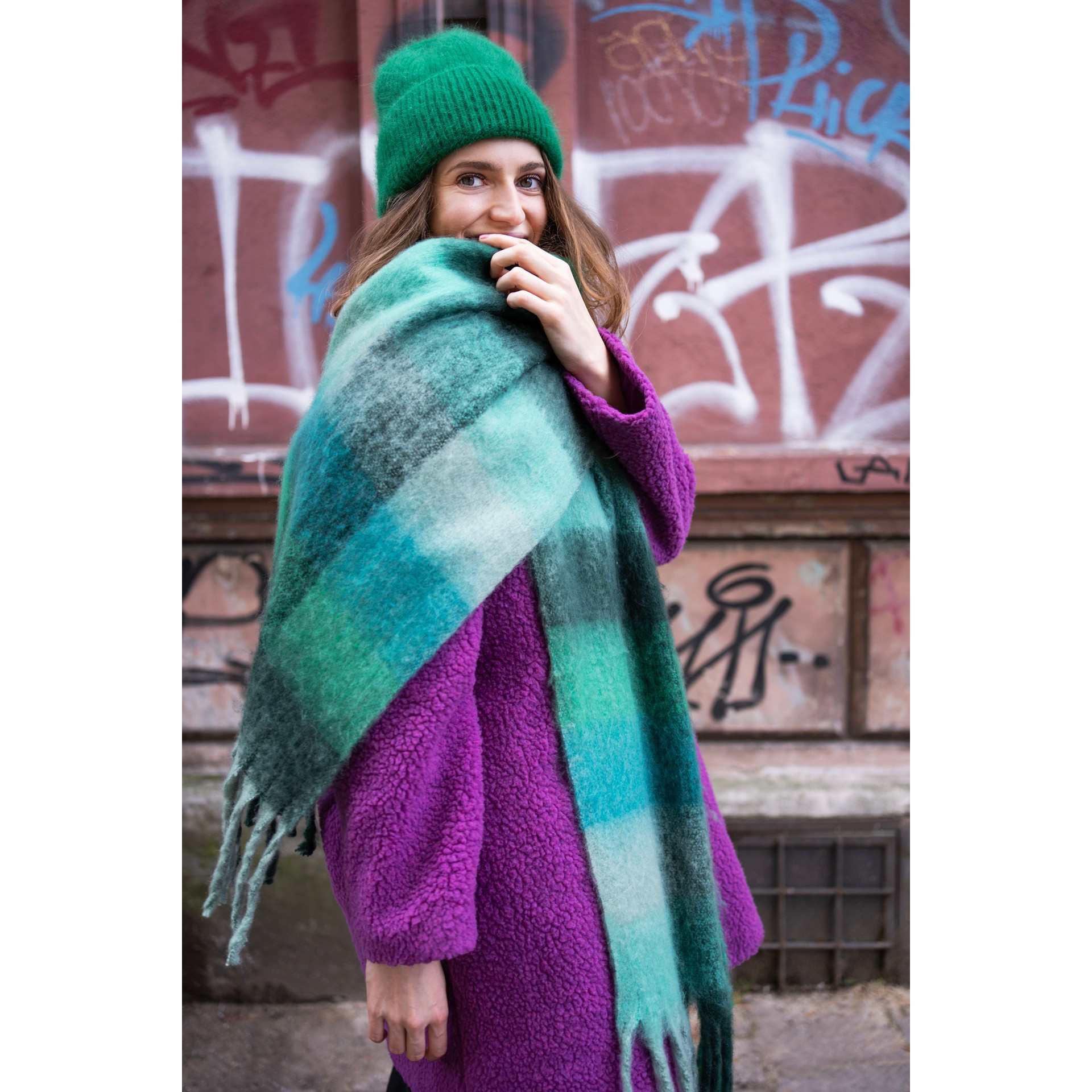 Chlupatý, měkký šátek s třásněmi. Vyrobeno z měkkého materiálu příjemného na dotek. Velmi teplý a příjemný na dotek, vytvořený pro osoby citlivé na chlad. Hodí se k mnoha různým úpravám - elegantním i městským.