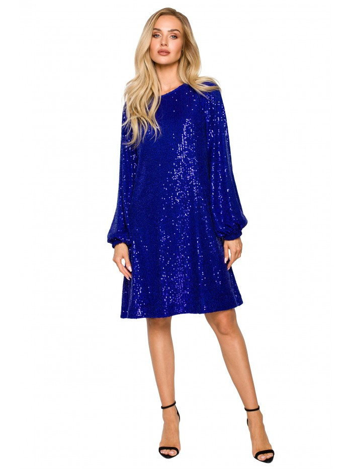 Šaty áčkového střihu s biskupskými rukávy M715 královsky modré - MOE