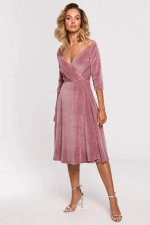 Vylepšete svůj styl s těmito elegantními midi šaty, které vnesou do vašeho vzhledu luxusní a glamour atmosféru. Zavinovací výstřih ve tvaru V, stažený pas a rozšířená zavinovací sukně.