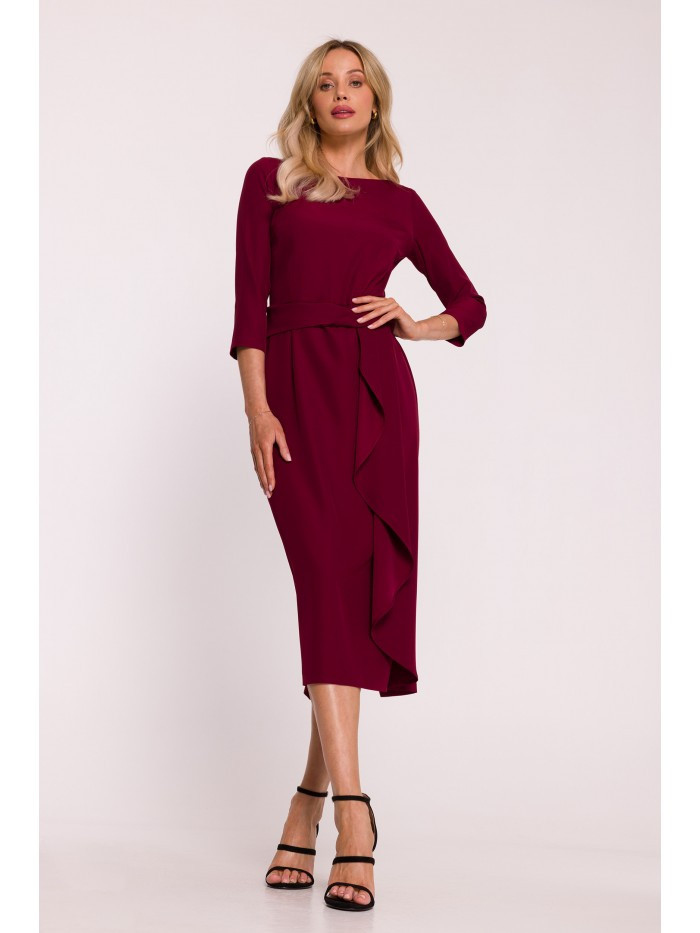 Šaty s volánkem S425 bordó - Stylove