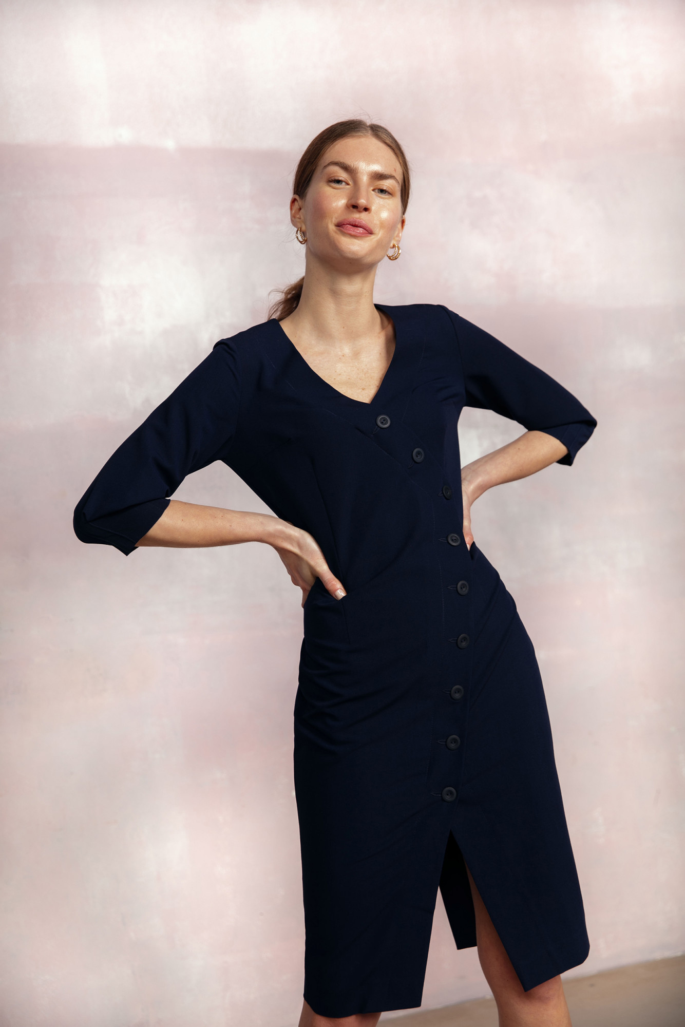 - asymetrická zavinovací přední část s pevnými knoflíky