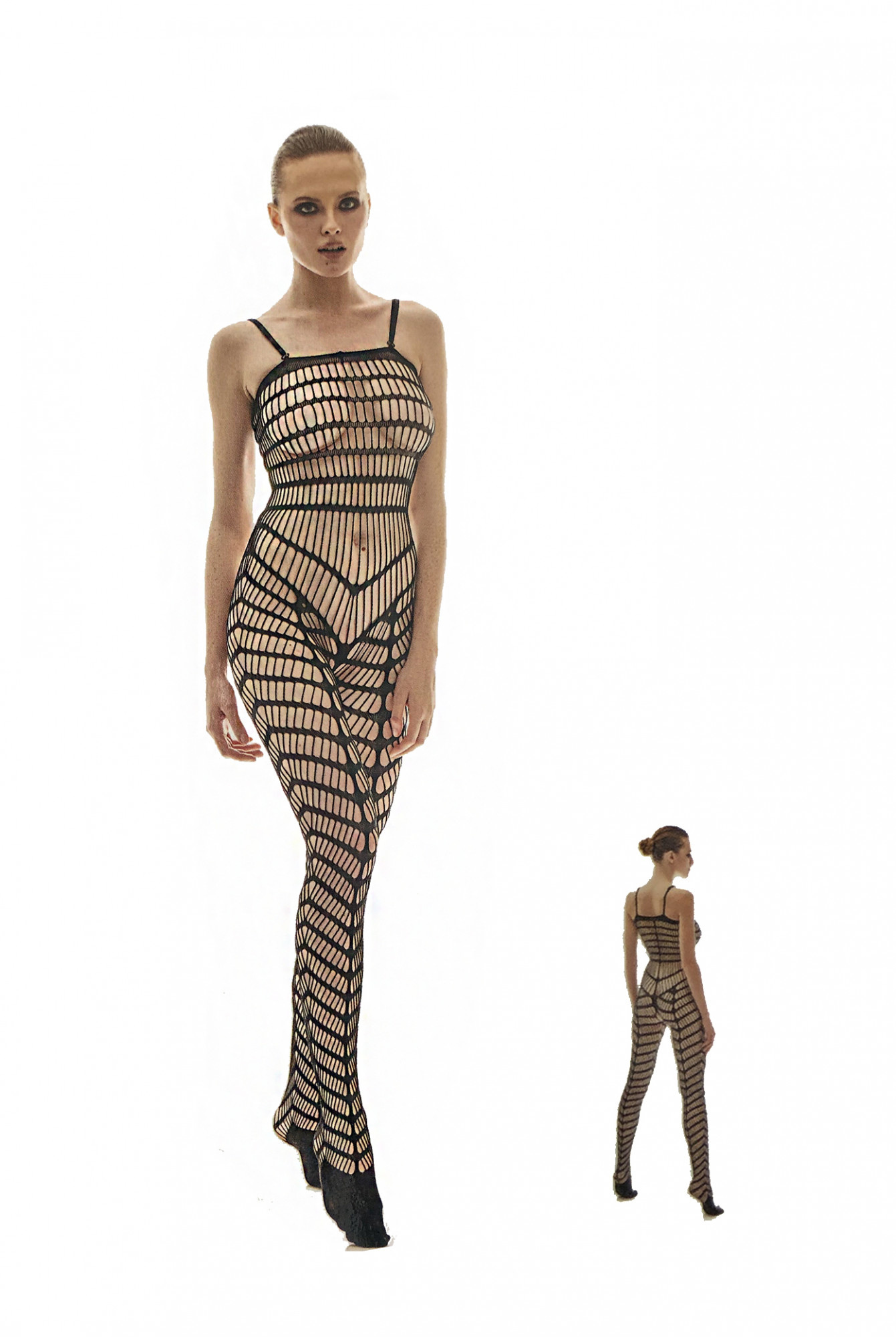 Sexy body je vyrobeno ze síťovaného pružného materiálu s ramínky,