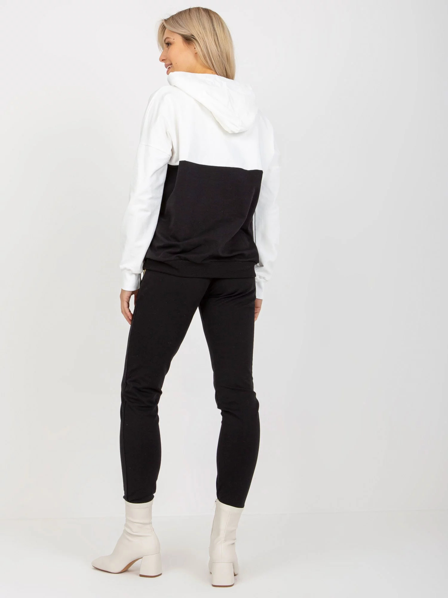 Ecru-černá dámská tepláková souprava s kalhotami .