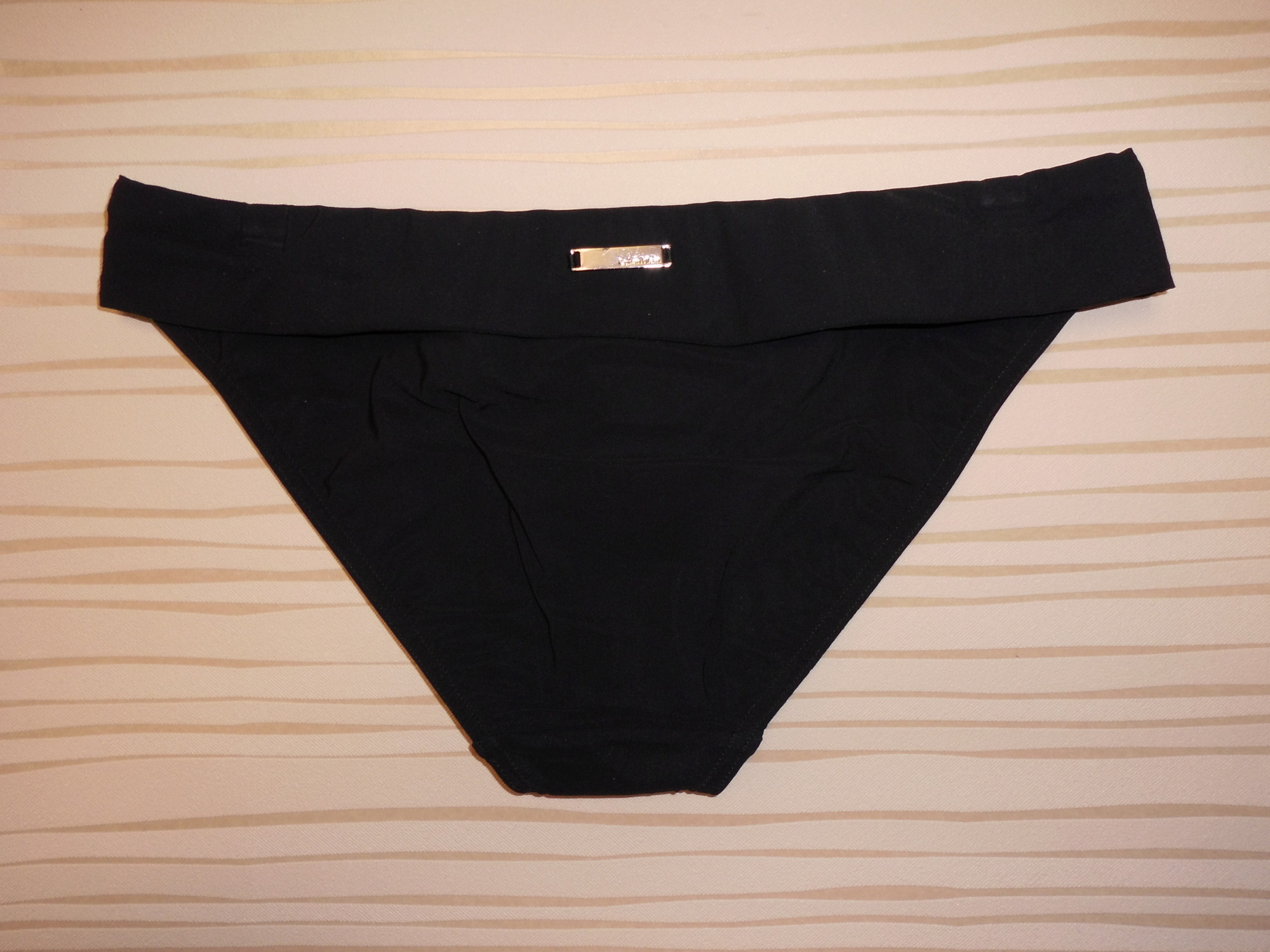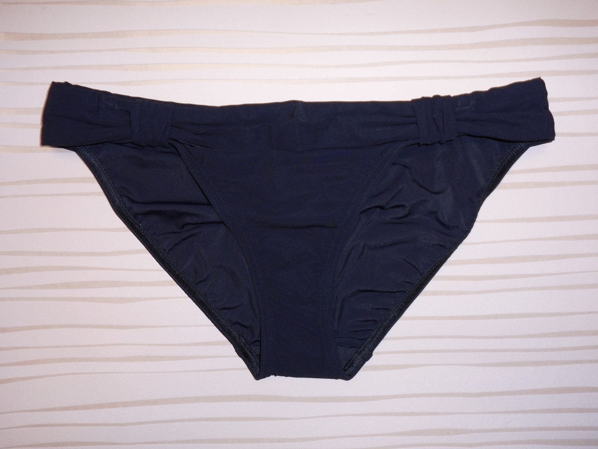 Spodní díl plavek je nízkého střihu, u pasu efektně zdobeno jemným řasením. V zadní části u pasu ozdobeno logem Calvin Klein. Materiál 72% nylon, 28% lycra.
