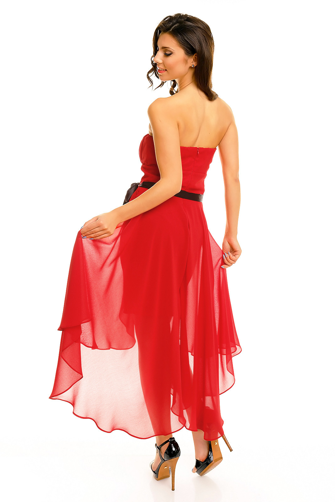 Společenské šaty korzetové MAYAADI s mašlí a asymetrickou sukní červené