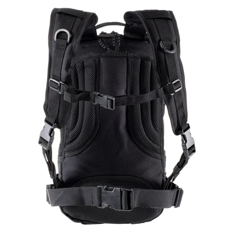 Batoh má: 2 prostorné hlavní komory, dvě přední kapsy a zadní kapsu na zádech například na camelbak.