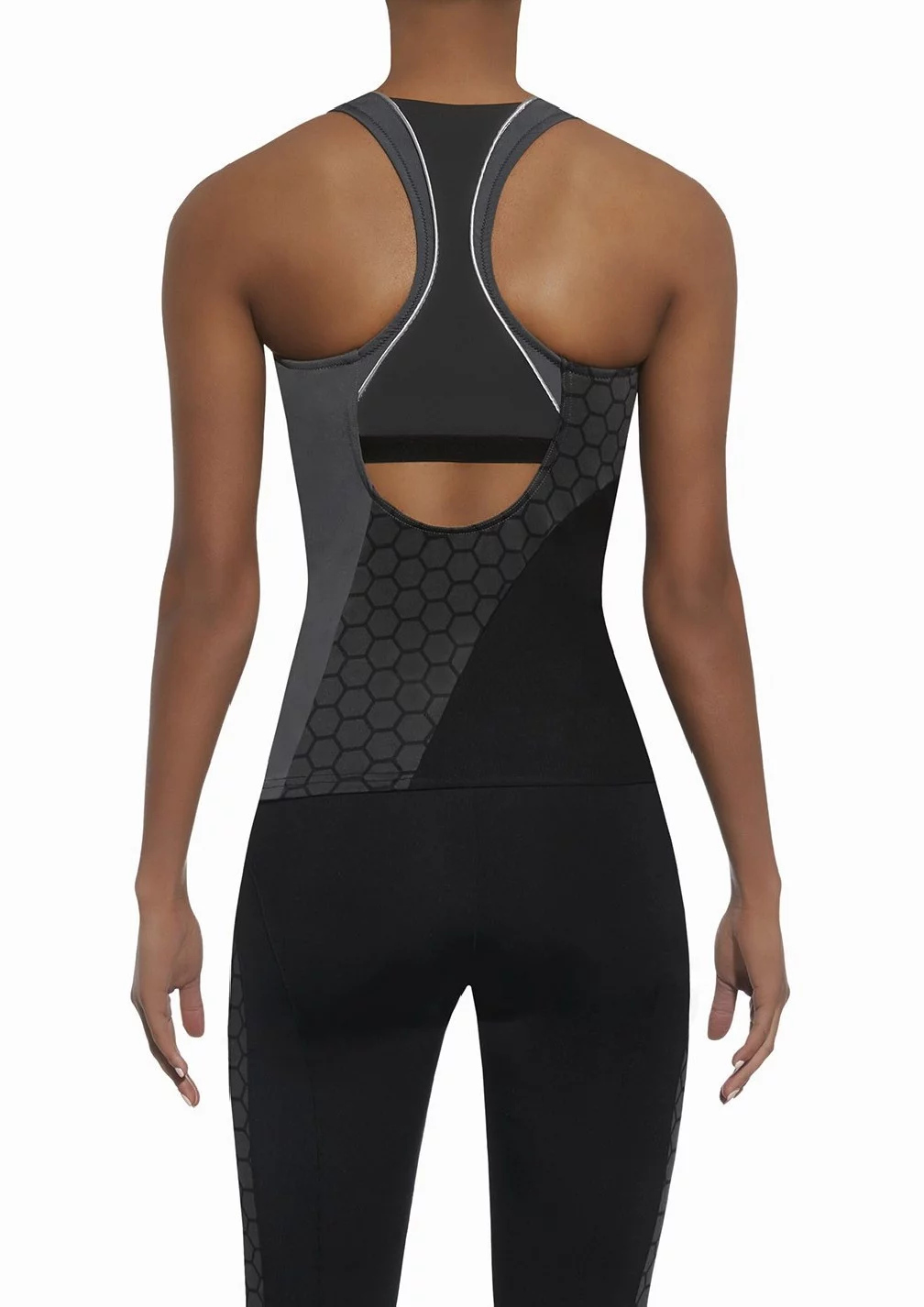 je funkční tréninkové tílko ve stylovém energickém designu. Širší ramínka a moderní sportovní střih se zajímavým výřezem na zádech zaručují maximální komfort a rozsah pohybu při sportovních aktivitách. Materiál, ze kterého je top vyroben, je vysoce prodyšný, a navíc zabezpečuje odvod vlhkosti od těla