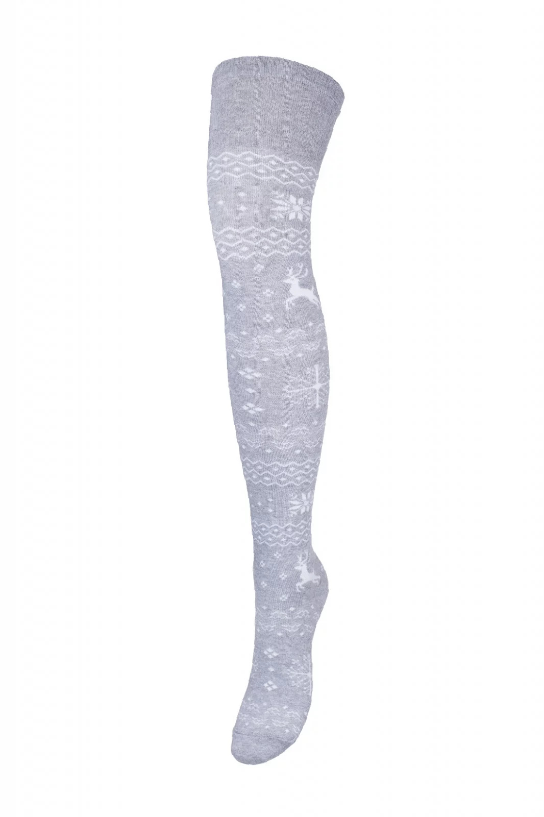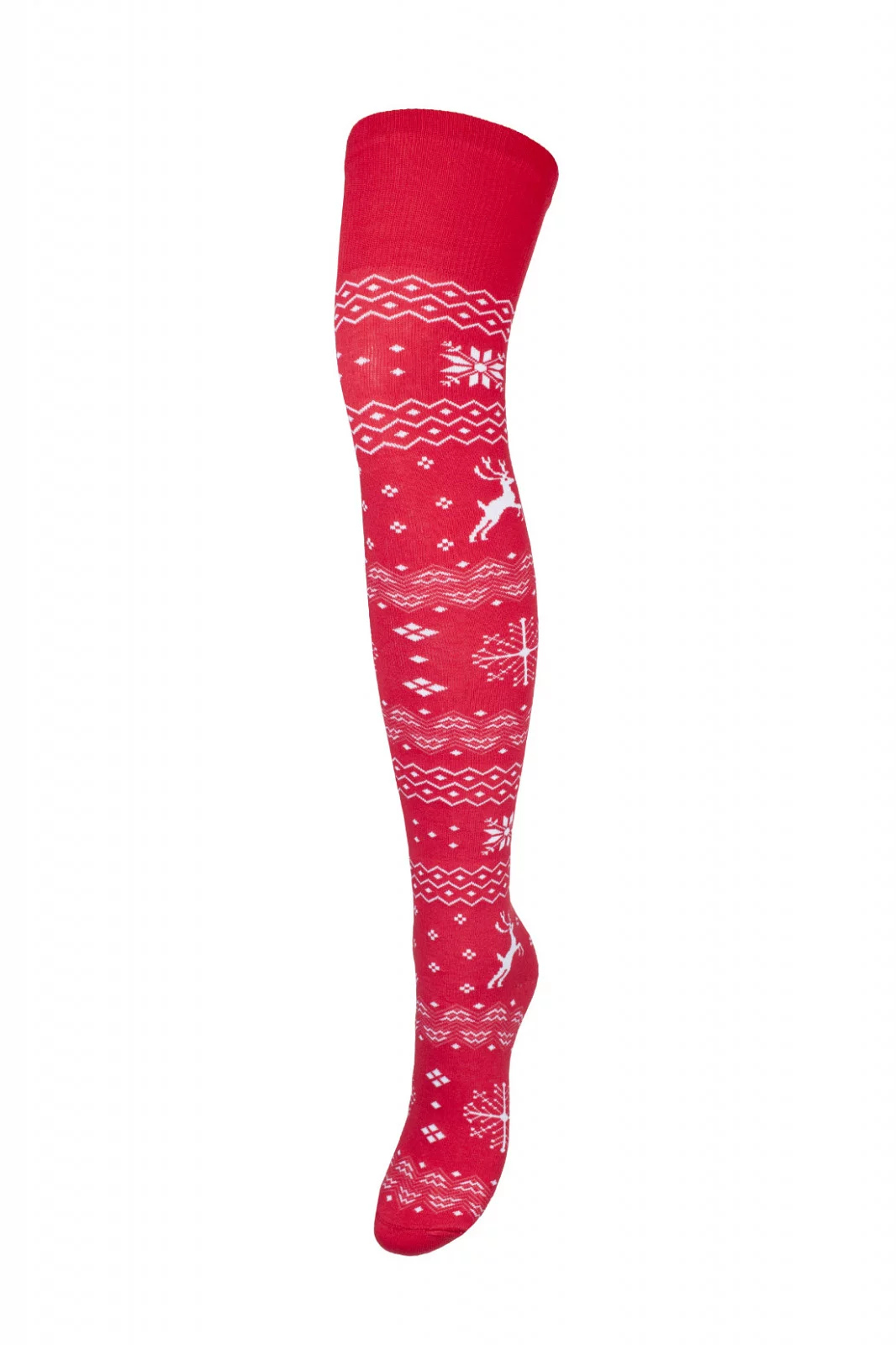 Nadkolenky jsou ozdobené svátečním vánočním motivem.