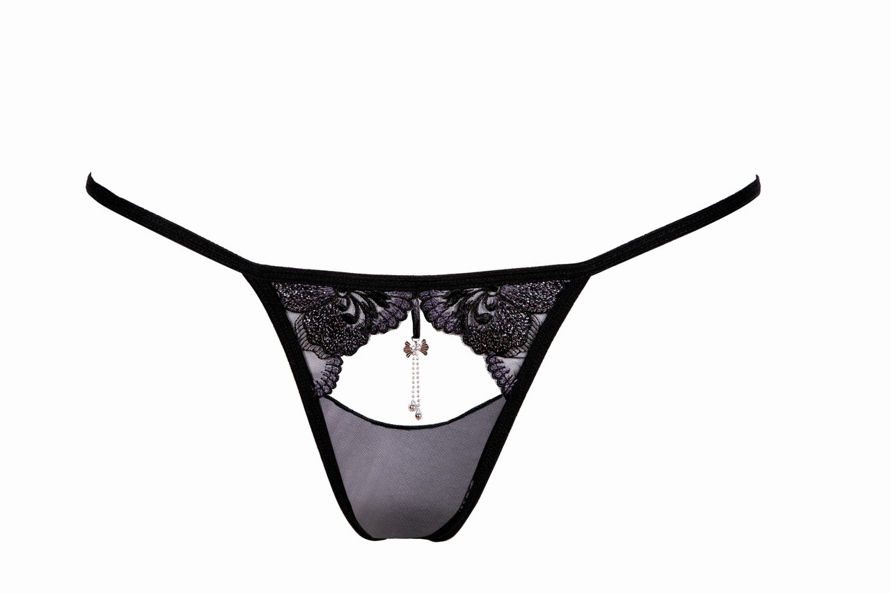 Máte ráda odvážné a sexy prádlo? Vyzkoušejte tyto tanga, protože je můžete nosit klidně každý den. Mají originální výstřih na přední straně, který doplňuje ozdobný přívěsek. Krajka a tenké pásky na bocích krásně model zdobí. Vzadu vyniká malá mašlička. Oblékněte si tento skvost a uvidíte, že zazáříte!