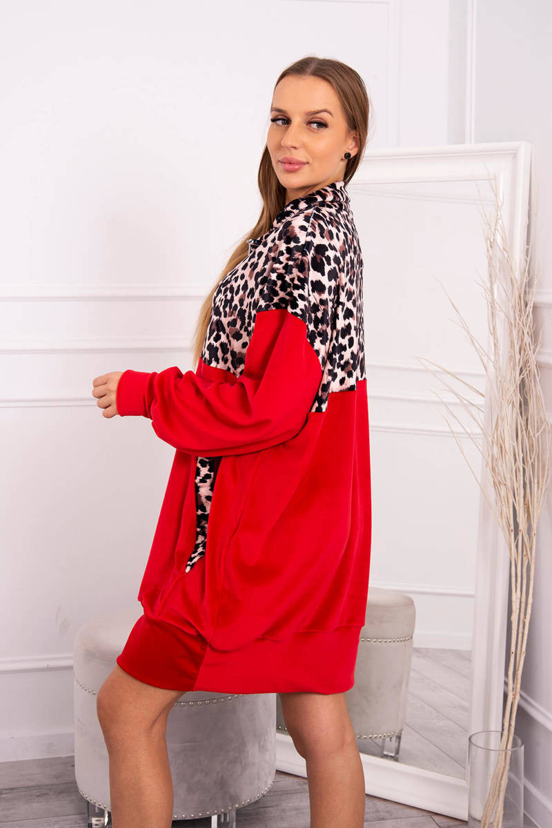 Velurové šaty s leopardím potiskem 22672 červené - Kesi