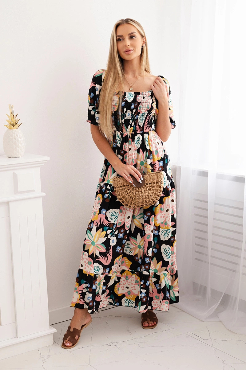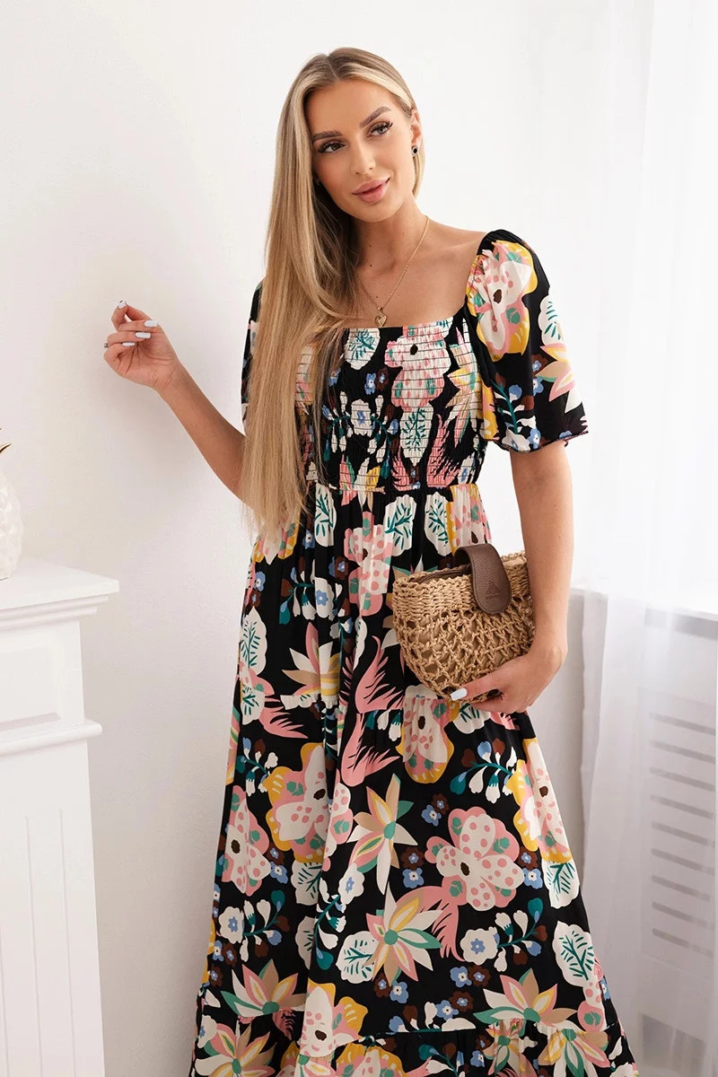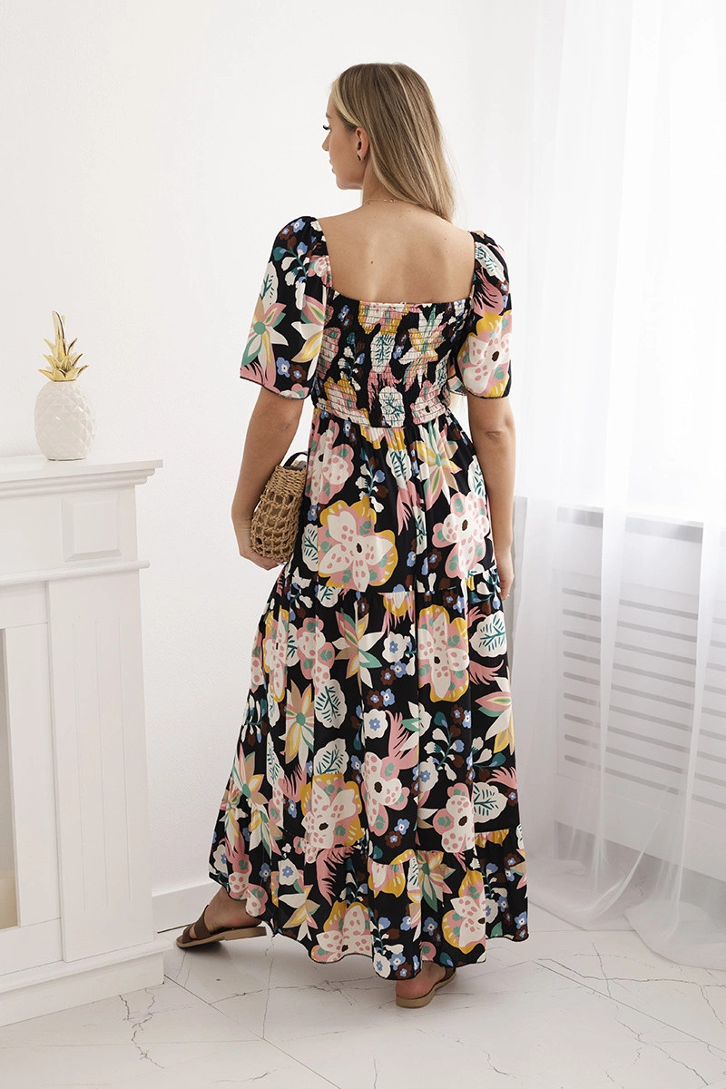 Viskózové šaty s volánkovým výstřihem 29477 černé - Kesi