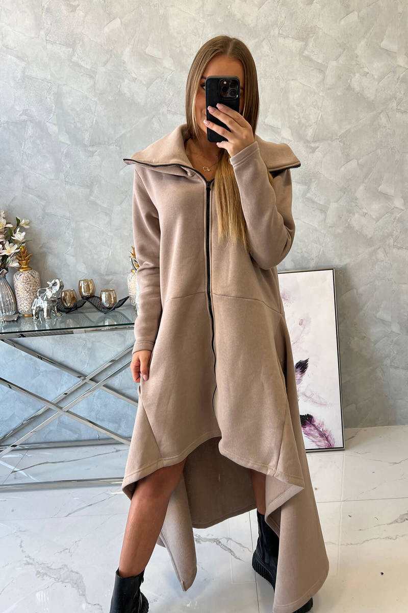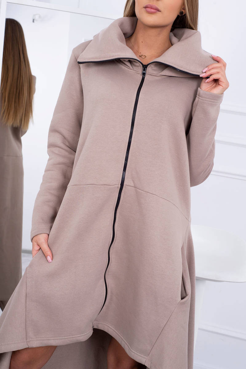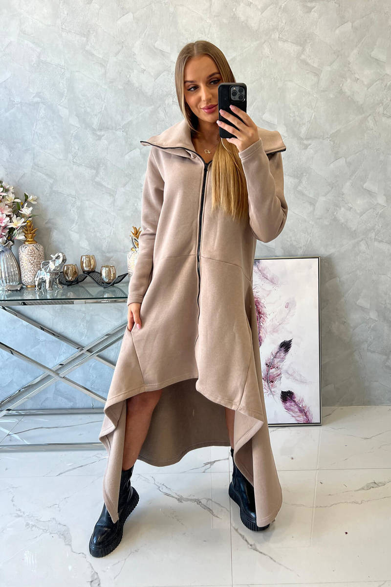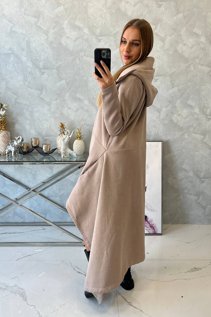Představujeme vám módní šaty. Šaty mají kapuci, zapínání na zip a delší boky. Ideální každodenní poloha. Šaty jsou vyrobeny z vysoce kvalitní zateplené tkaniny. Velikost je univerzální a vyhovuje dámám, které nosí velikost S, M nebo L.