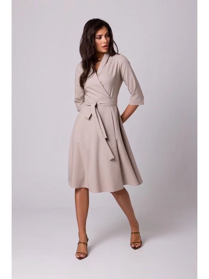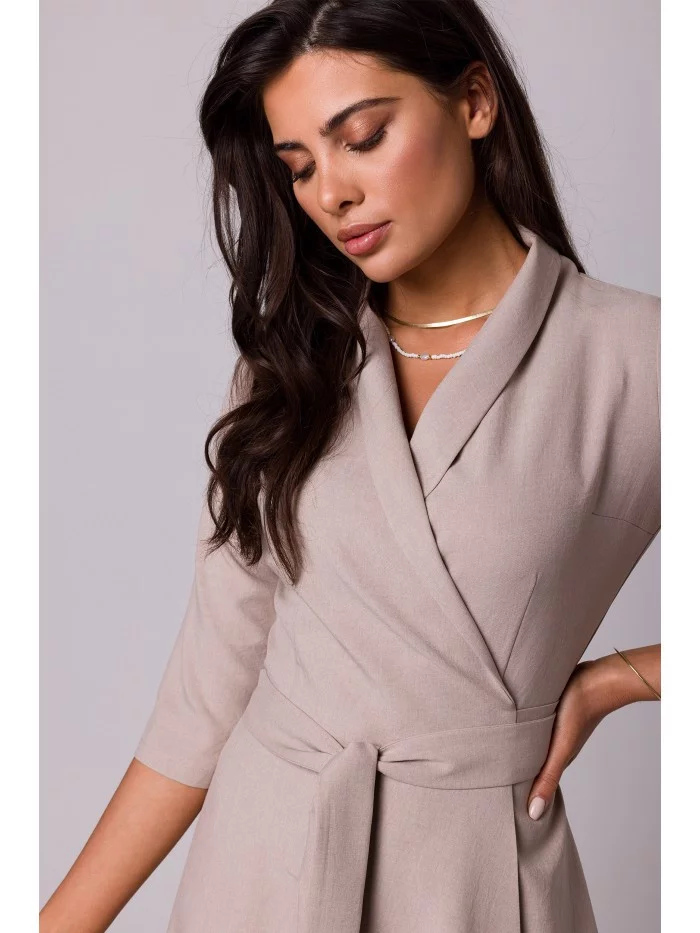 Zavinovací šaty se šálovým límcem B255 - béžové - BEwear