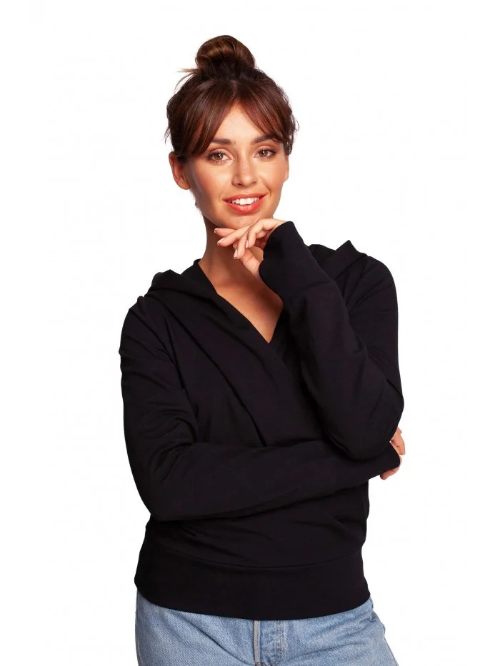 Přidání recenze k Zavinovací svetr s kapucí B246 černý - BeWear