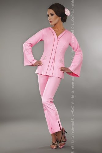 Bavlněný dámský župan Sorana LivCo s dlouhými rukávy z příjemného materiálu, který se skvěle přizpůsobí Vašemu tělu, je ozdobený výšivkami růží. Župan neobsahuje kalhoty. K županu je možno dokoupit pyžamo KAME LivCo, který je vyroben ze stejného materiálu ve stejné barvě. Materiálové složení: 95% bavlna, 5% spandex. Barva: růžová. Velikost: S, M, L, XL.